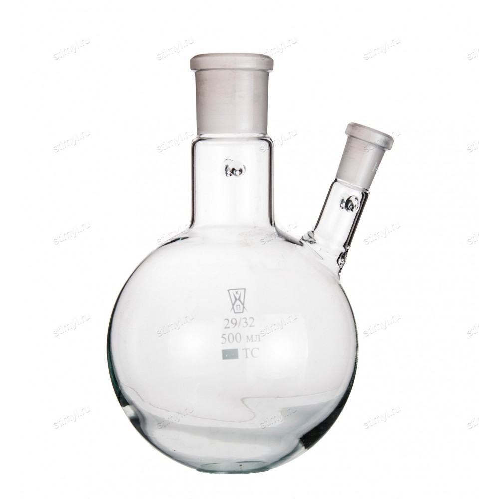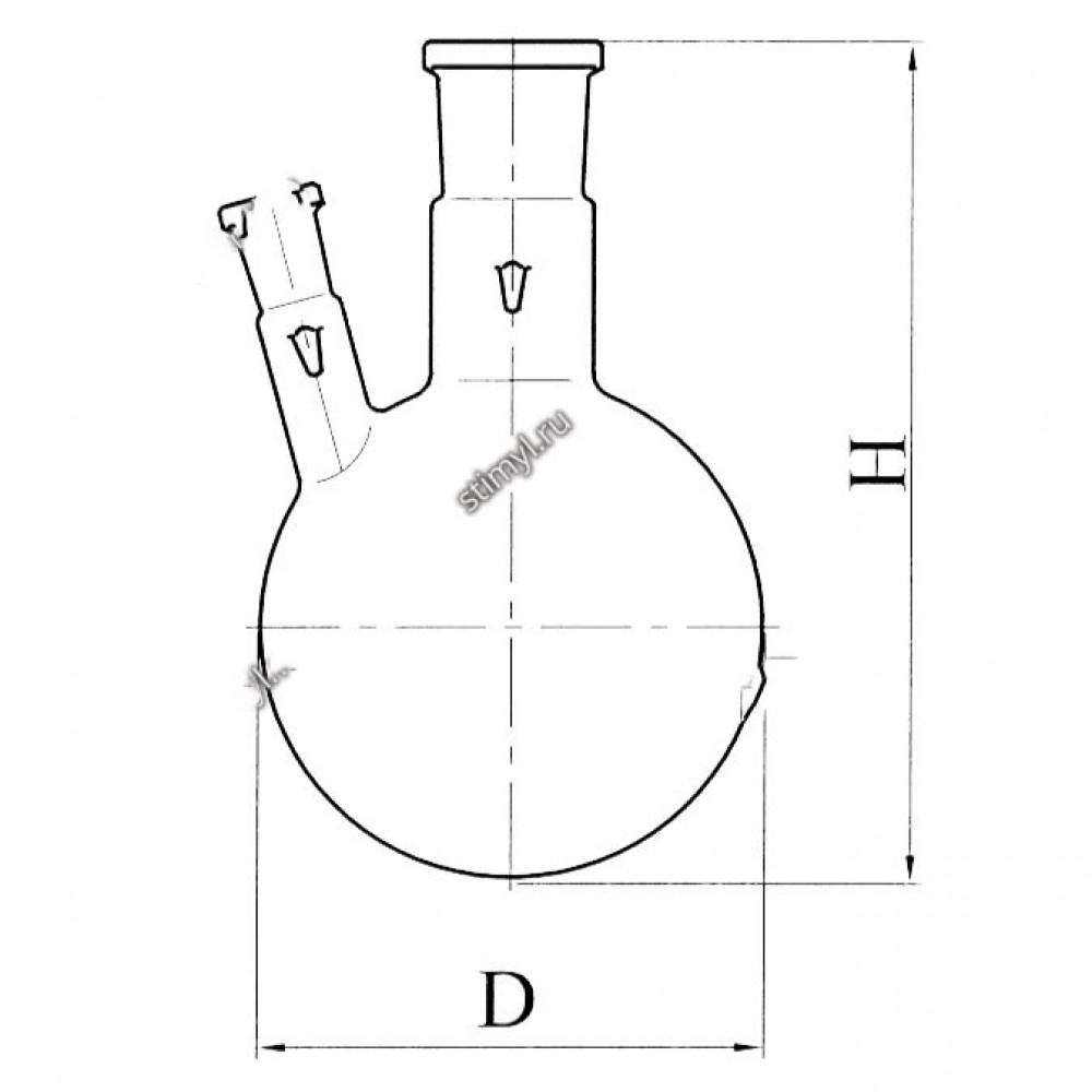 Колба КГУ-2 круглодонная с 2-мя горловинами под углом с шлифами применяется при проведении различных синтезов, требующих применения термометра, холодильника, мешалки, воронки и т.д. Изготавливаются из стекла ТС ГОСТ 21400-75 и Симакс ЧСН ИСО 3585.