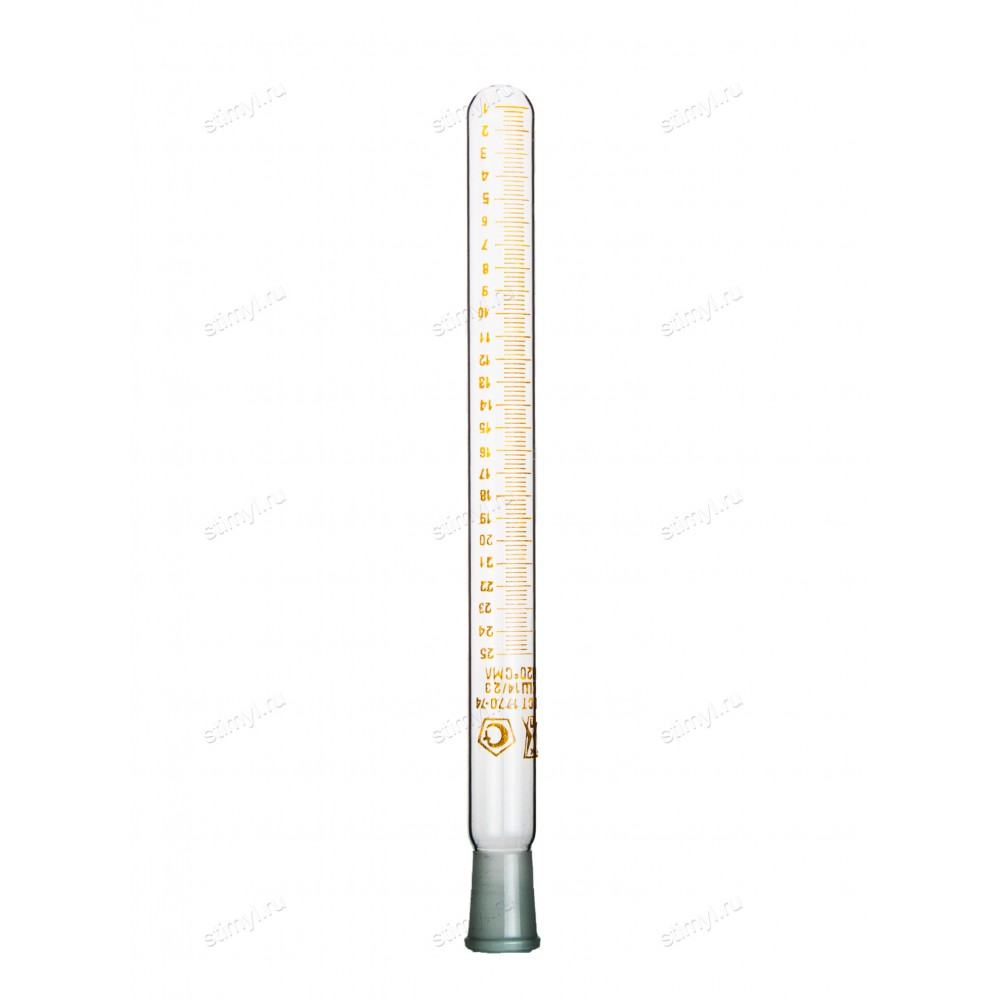 Пробирка мерная исп.2 со шлифом КШ 1423 применяется для определения объема веществ при химических анализах. Представляют собой прямые круглодонные пробирки, горловина - шлиф-муфта, конус -взаимозаменяемый КШ 14/23.Могут поставляться в комплекте с массивными стеклянными или пластмассовыми пробками. Деления нанесены на всю длину пробки.Допускаемая погрешность соответствует цене деления шкалы.Выпускаются их химически стойкого лабораторного стекла.