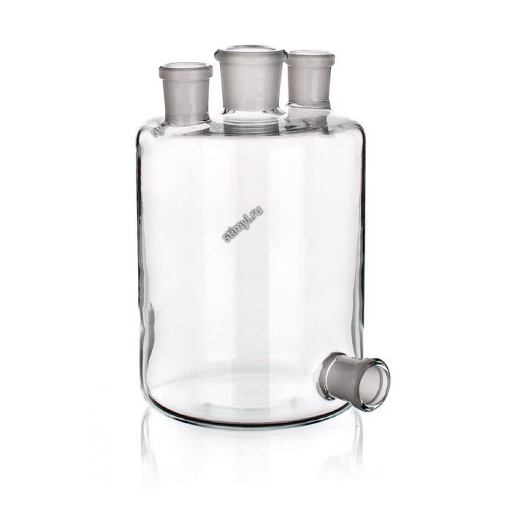 Склянка с тубусом (Бутыль Вульфа с 3-мя горловинами без крана) предназначена для отбора и хранения раствора и газа. Может использоваться как предохранительный сосуд перед водоструйным насосом.