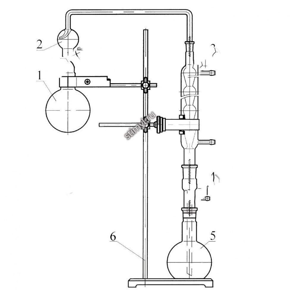 6. соединенных между собой с помощью шлифов конических взаимозаменяемых, закрепленных хомутиками и пружинами. Детали прибора устанавливаются в держатели на штативе