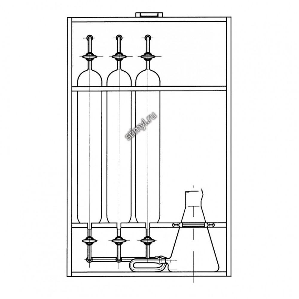 Прибор ППГ предназначен для отбора, хранения и транспортирования проб газа. Действие прибора основано на вытеснении воздуха из пипеток с помощью колбы, наполненной водой, которая служит уравнительным сосудом, с последующим набором в них нужной пробы газа.Используется в тех случаях, когда невозможно провести анализ у места отбора пробы.
