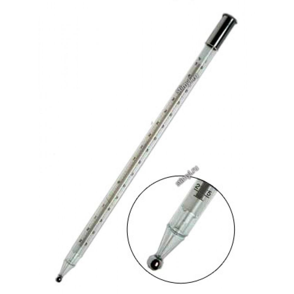 Термометры ТМ-4 метеорологические психрометрические. Комплект из 2-х ртутных стеклянных термометров к психрометру стационарному. Термометры метеорологические психрометрические. Комплект из 2-х ртутных стеклянных термометров к психрометру стационарному.Изготавливаются по ГОСТ 112-78.Внесены в Государственный реестр средств измерений и имеют сертификат "об утверждении типа средств измерений".КонструкцияСтеклянный термометр с вложенной шкальной пластиной из листового стекла молочного цвета. Резервуар шаровидный. Верхняя часть закрыта металлическим колпачком с антикоррозийным покрытием.