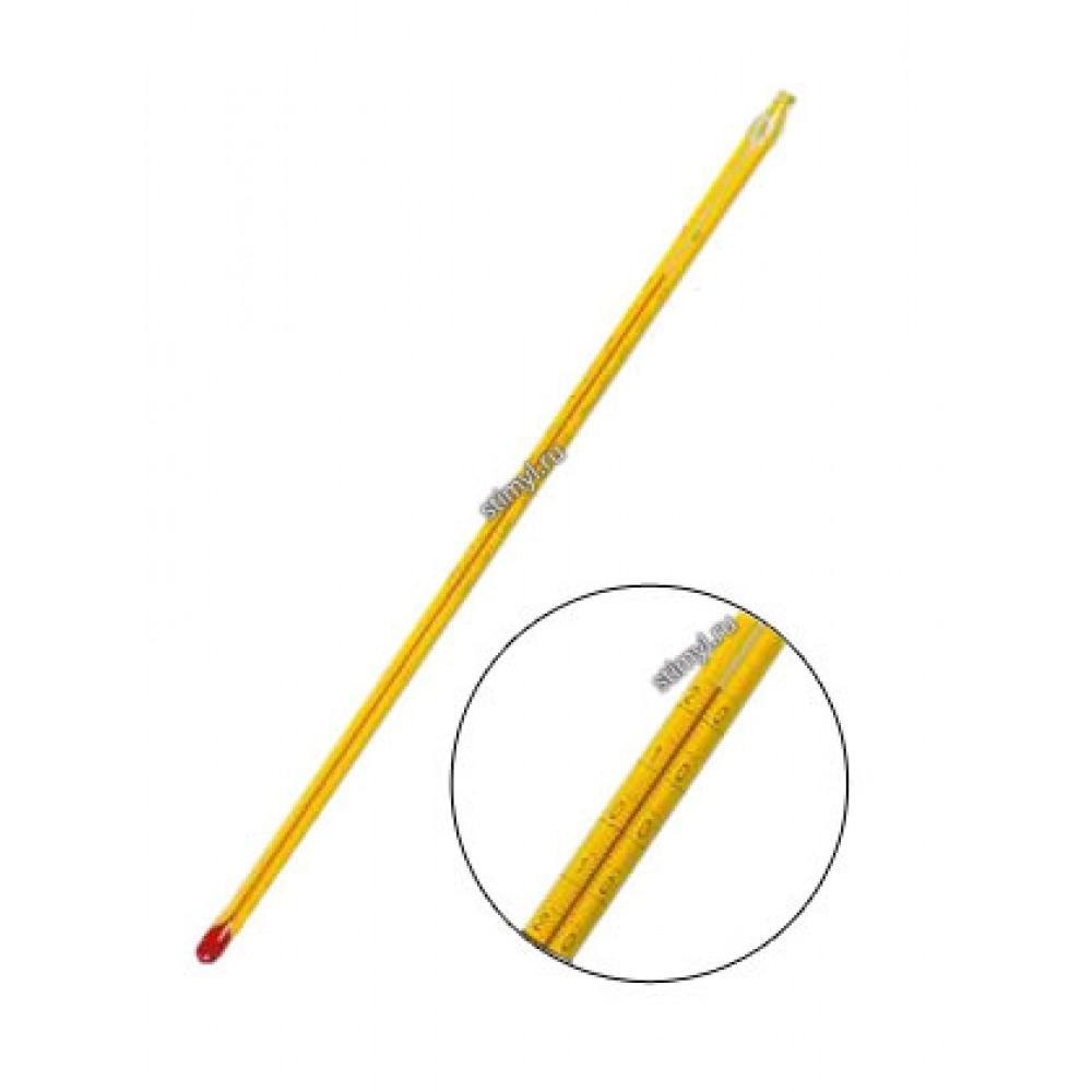 Термометр ТИН-8 предназначен для определения температур помутнения и кристаллизации при испытании нефтепродуктов. Термометр ТИН-8 — термометр стеклянный жидкостный не ртутный «палочного» типа, изготовленный из массивной капиллярной трубки. Шкала нанесена непосредственно на трубку. Термометр полного погружения.При измерении температуры погружается в измеряемую среду до отсчитываемой температурной отметки на шкале. Для предотвращения разрушения термометра при перегреве имеется запасной резервуар на 30°С.Термометр предназначен для измерений температуры помутнения и начала кристаллизации нефтепродуктов.Изготавливается по ГОСТ 400-80. Внесен в Государственный реестр средств измерений и имеет «Сертификат об утверждении типа средств измерений».КонструкцияСтеклянный термометр палочного типа из массивной капиллярной трубки.При определении температуры термометр погружают в измеряемую среду полностью.