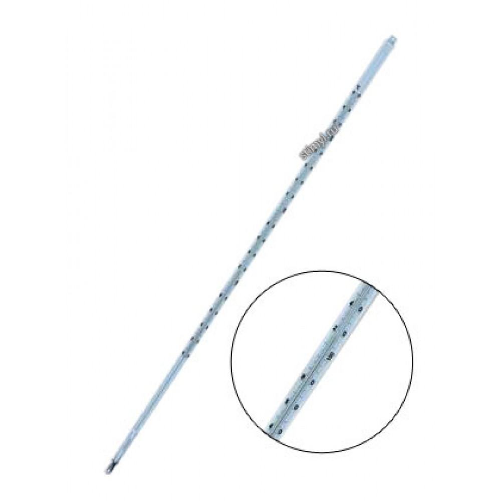 Термометр ТН-2М предназначен для определения температуры вспышки нефтепродуктов в открытом тигле (в приборе Бренкена). Термометр для определения температуры вспышки в открытом тигле. Предназначен для определения температуры вспышки нефтепродуктов в открытом тигле (в приборе Бренкена).Изготавливается по ГОСТ 400-80.Термометр внесен в Государственный реестр средств измерений и имеет «Сертификат об утверждении типа средств измерений».КонструкцияСтеклянный термометр с вложенной шкальной пластиной из молочного стекла.